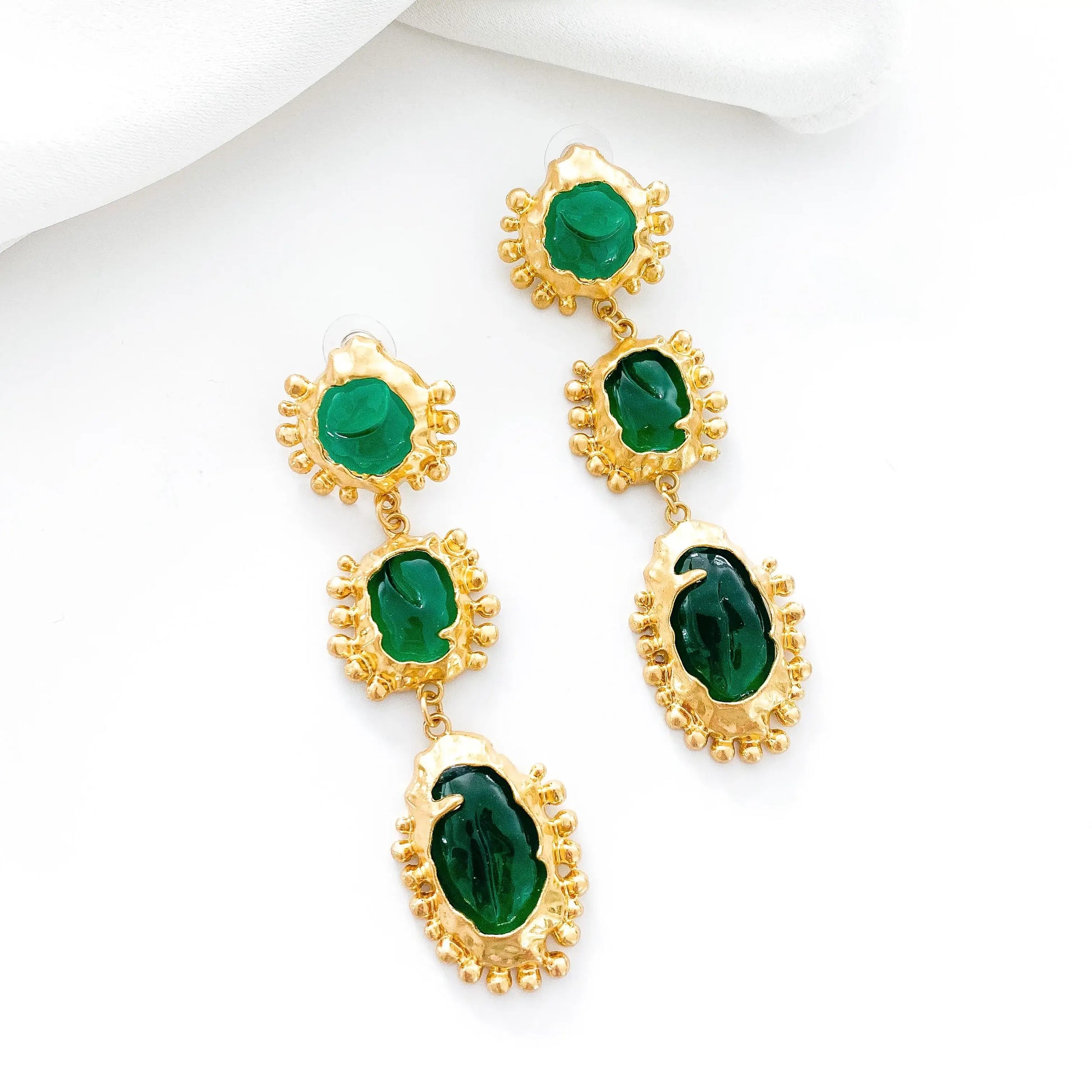Enhance your outfit and make everyone green with envy with our Vintage Long Drop Statement Earrings. Pair with our green Orion dress for a bold wedding guest outfit!